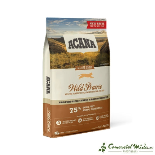 El pienso Acana Feline Wild Praire es un pienso compuesto mayoritariamente de carnes de calidad como pollo o pescado de agua dulce. Sus ingredientes son ricos en vitaminas, minerales y antioxidantes que ayudan a cuidar el sistema inmunitario.