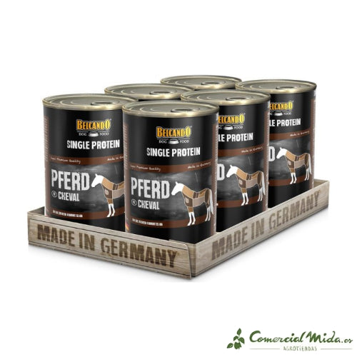 Belcando Single Protein Caballo es un complemento alimenticio especialmente diseñado para perros, ideal para el diagnóstico y manejo de intolerancias alimentarias. Disponible en cuatro selectas variedades de carne, este producto se puede combinar con BELCANDO Mix it tanto para dietas de eliminación como para la alimentación diaria de perros con intolerancias alimenticias. Puede ser utilizado como alimentación permanente en caso de intolerancias alimentarias, siempre junto con BELCANDO Mix it.