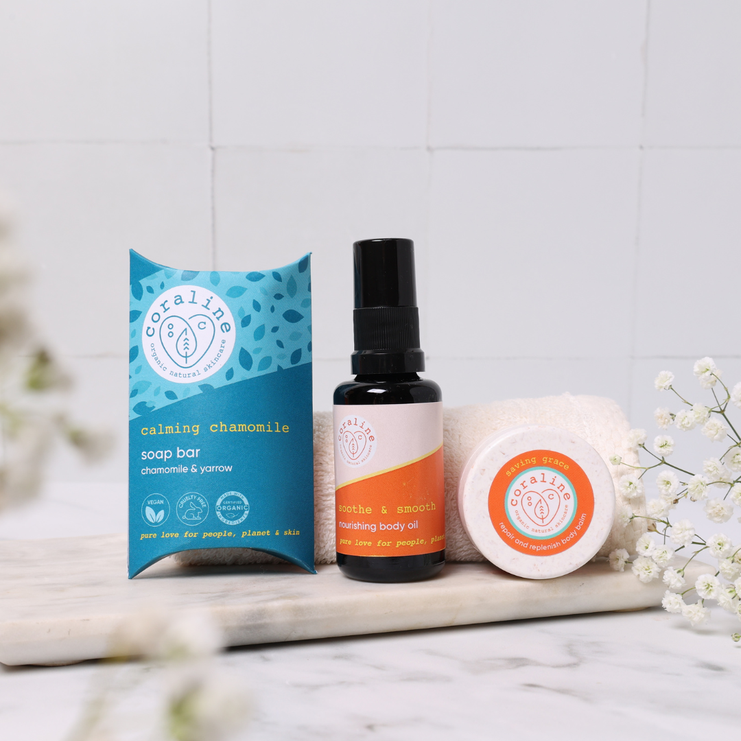 Perfect for those looking for a complete bodycare routine, each product is formulated to help soothe and repair dry, sensitive skin, as well as treat conditions such as eczema and psoriasis.