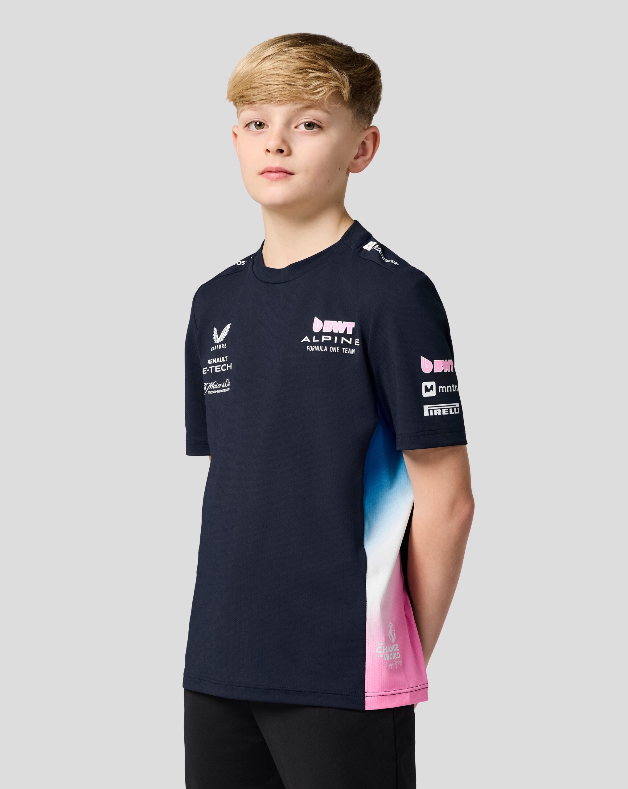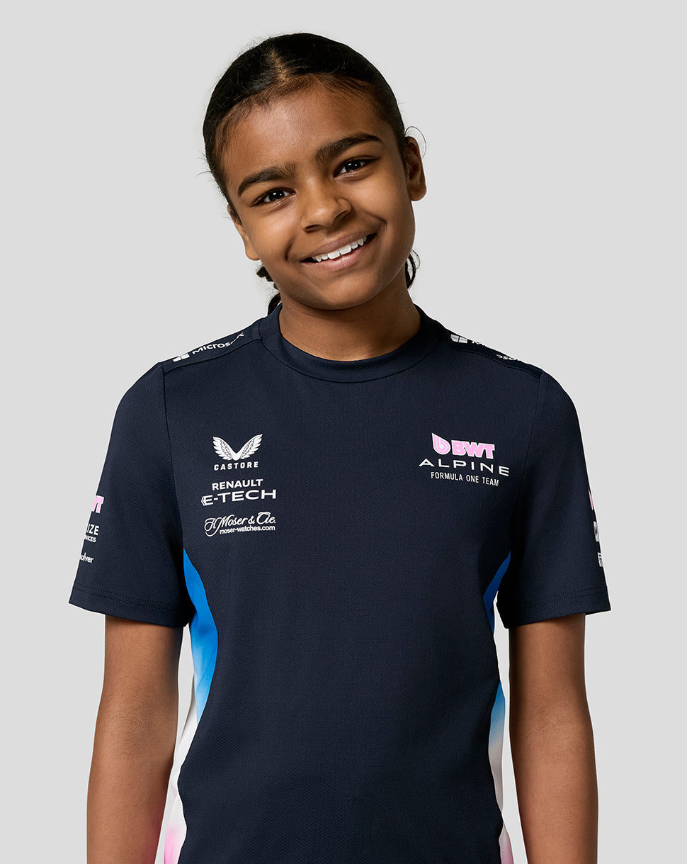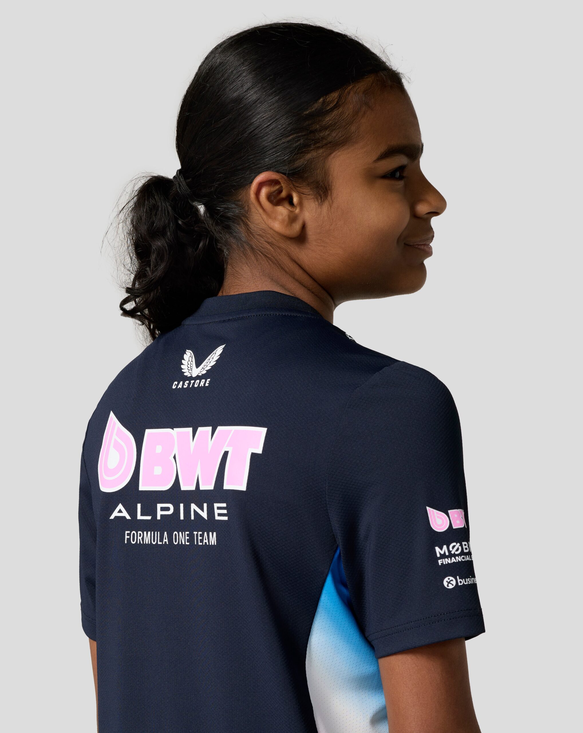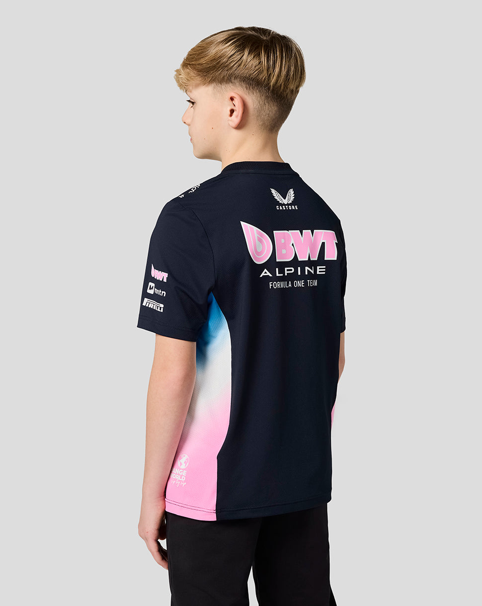 The BWT Alpine Formula One Team Junior Official Set Up T-Shirt will keep you close to your favourite crew this season. This dynamic design from the team’s 2025 Replica collection has set-in short sleeves, a classic crew neckline, and contrasting side panels. The T-shirt features all the official sponsors and branding throughout, allowing you to seamlessly declare yourself a loyal fan.
