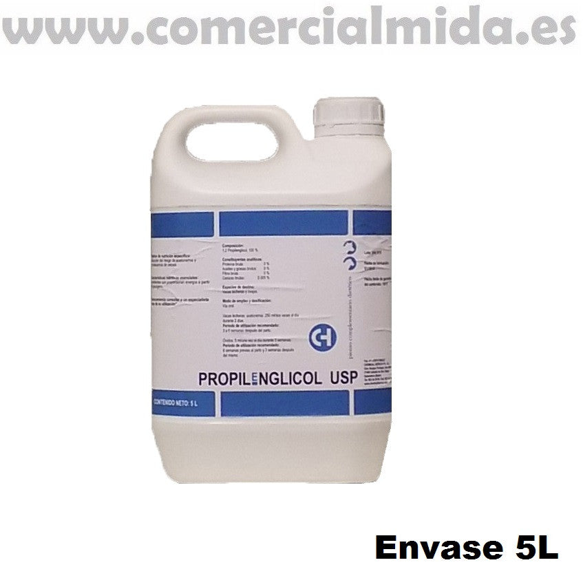PROPYLENGLlCOL USP di Chemical Iberica è un mangime dietetico complementare in forma liquida per bovini e ovini che riduce il rischio di acetonemia e convalescenza da chetosi.