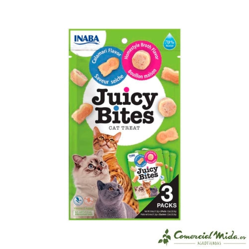 Snack Natural sabor Calamares y caldo para Gatos Juicy Bites de Churu Cat