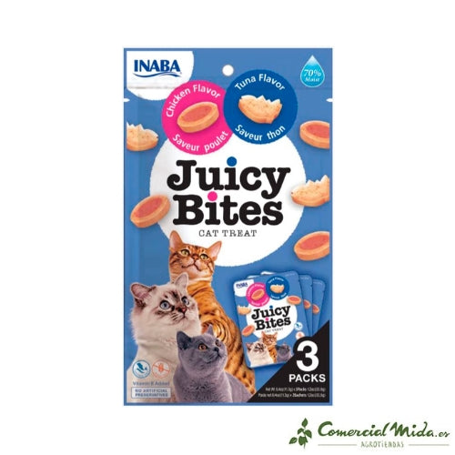 Snack Natural sabor pollo y atún para Gatos Juicy Bites de Churu Cat.
