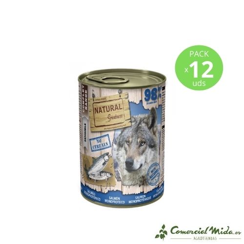 L’ingrediente principale di questo alimento umido monoproteico di Natural Greatness è Salmone, Questo è stato cotto attraverso una cottura a vapore che aiuta il proprietà degli ingredienti rimangono intatto praticamente nella sua interezza fino a quando non viene consumato dall’animale. Inoltre, contribuisce Omega 3 e 6 per migliorare la salute della pelle e del pelo del cane, contribuiscono anche alla transito intestinale e a potenziatore del sistema immunitario dell’animale domestico. È disponibile in confezione da 24 lattine da 170 gr o dentro 12 lattine da 400 g così puoi adattarti meglio alle esigenze del tuo cane.