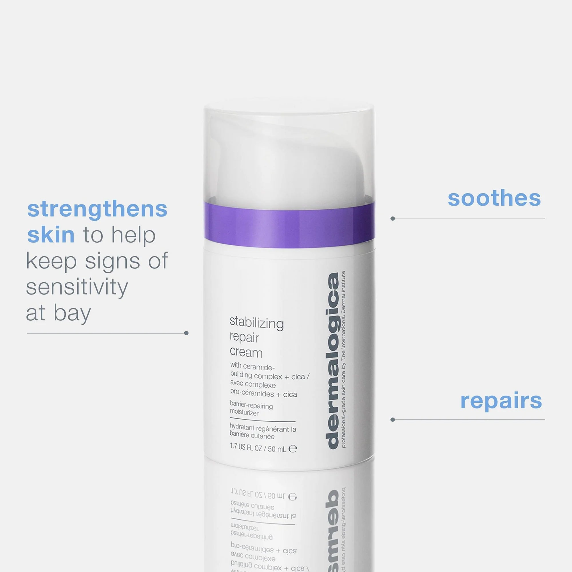 Discover soothing hydration with Dermalogica’s Stabilizing Repair Cream. This rich moisturizer is designed to repair and calm sensitive or compromised skin while restoring its natural barrier. Formulated to deliver deep, long-lasting moisture, it leaves skin feeling smooth and balanced.