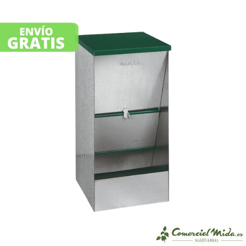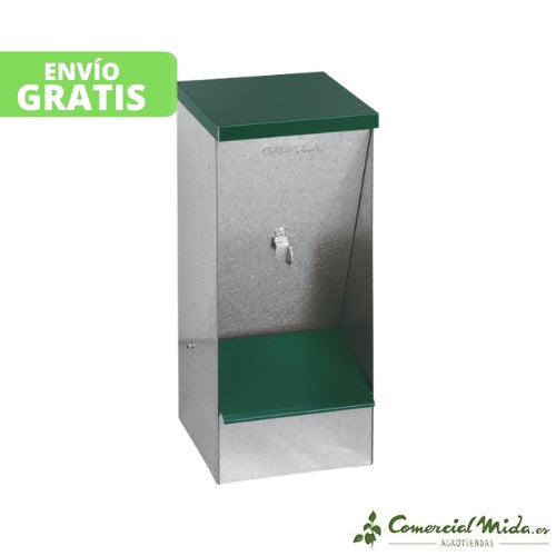 La tramoggia per cani Gaun è progettata per conservare igienicamente il mangime . La sua struttura in acciaio zincato mantiene il mangime fresco e protetto da roditori e altri animali o agenti esterni che potrebbero contaminarlo.