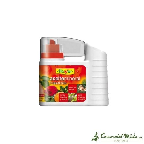 Il olio minerale of Flower è un insetticida di uso preventivo contro insetti nocivi e acari che attaccano le piante al punto da danneggiarle o indebolirle. È ideale per il controllo di cocciniglie, afidi, acari, ragni e mosche bianche, tra gli altri. L’olio crea un film sottile che proteggere piante e alberi , garantendo un’efficienza prolungata e una migliore manutenzione. Il insetticida-amicida agisce per contatto immediato dopo la sua applicazione. Il composto si diffonde sull’acaro o sull’insetto e otturazione le sue vie aeree causandone la morte per soffocamento. La tua domanda è autorizzata a uso domestico .