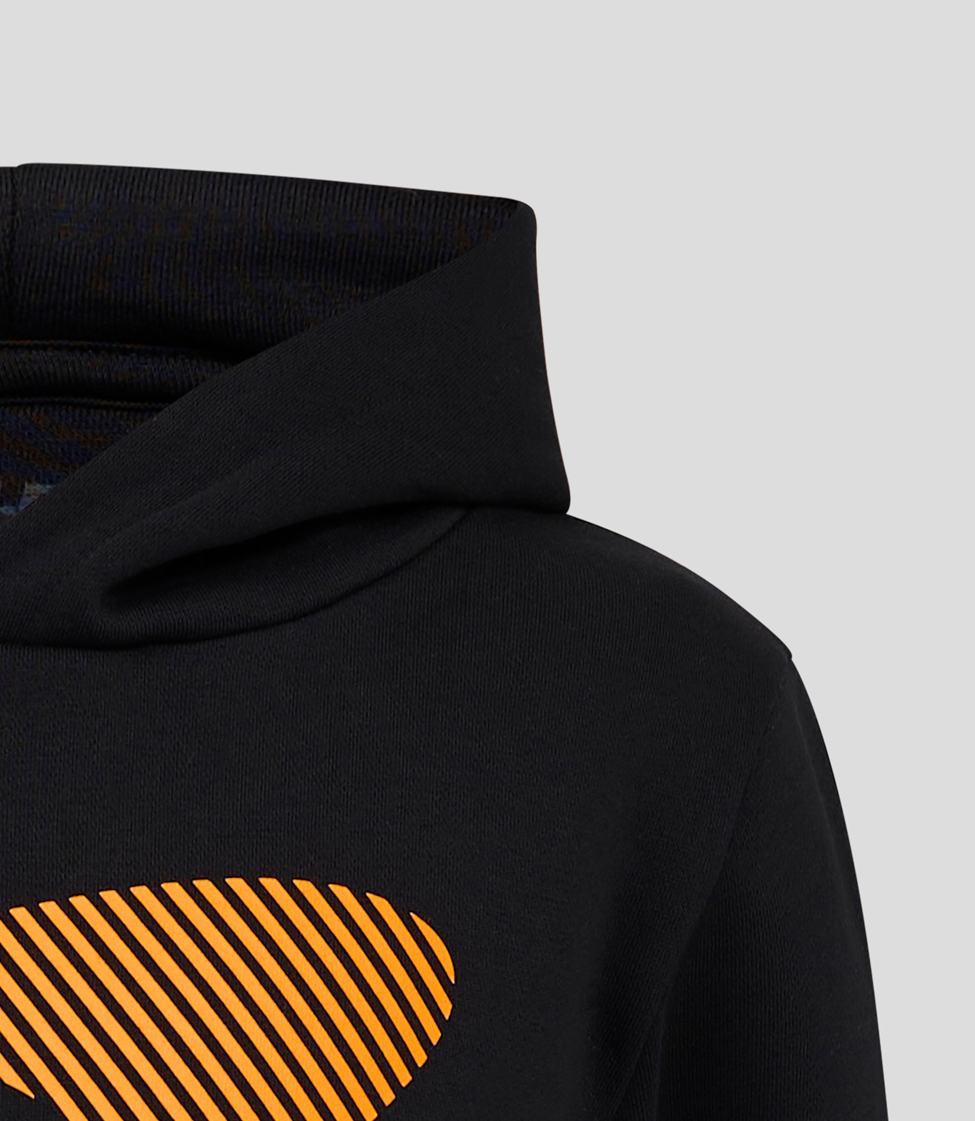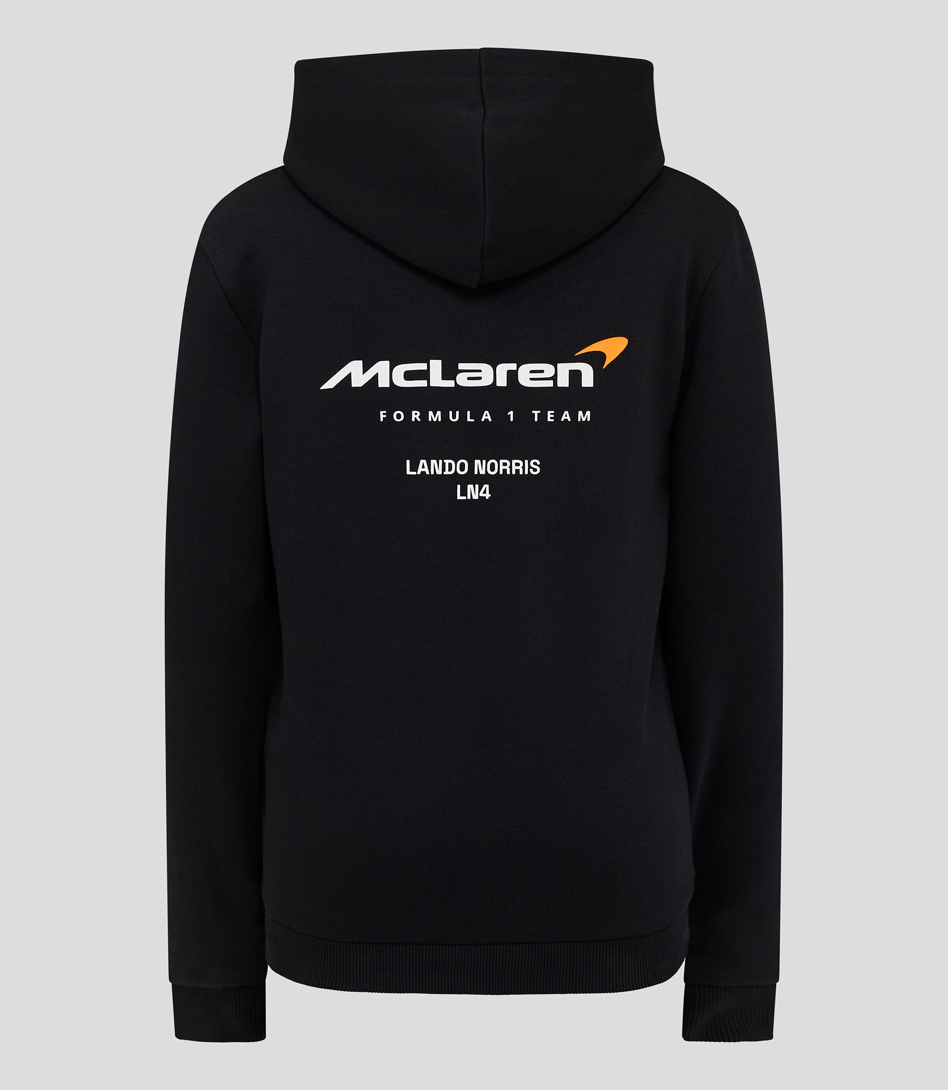 Soak up the atmosphere on the grid or recuperate from the action at home in the classic fit Junior McLaren Formula 1 Team Lando Norris Graphic Hoodie. Crafted from a soft, polycotton blend, this hoodie’s large kangaroo pocket serves as an on-the-go storage solution and adjustable hood grants wearers extra coverage. The design showcases screen prints relating to McLaren’s number four and features the team’s iconic speedmark logo, so it’s clear what side you’re on.