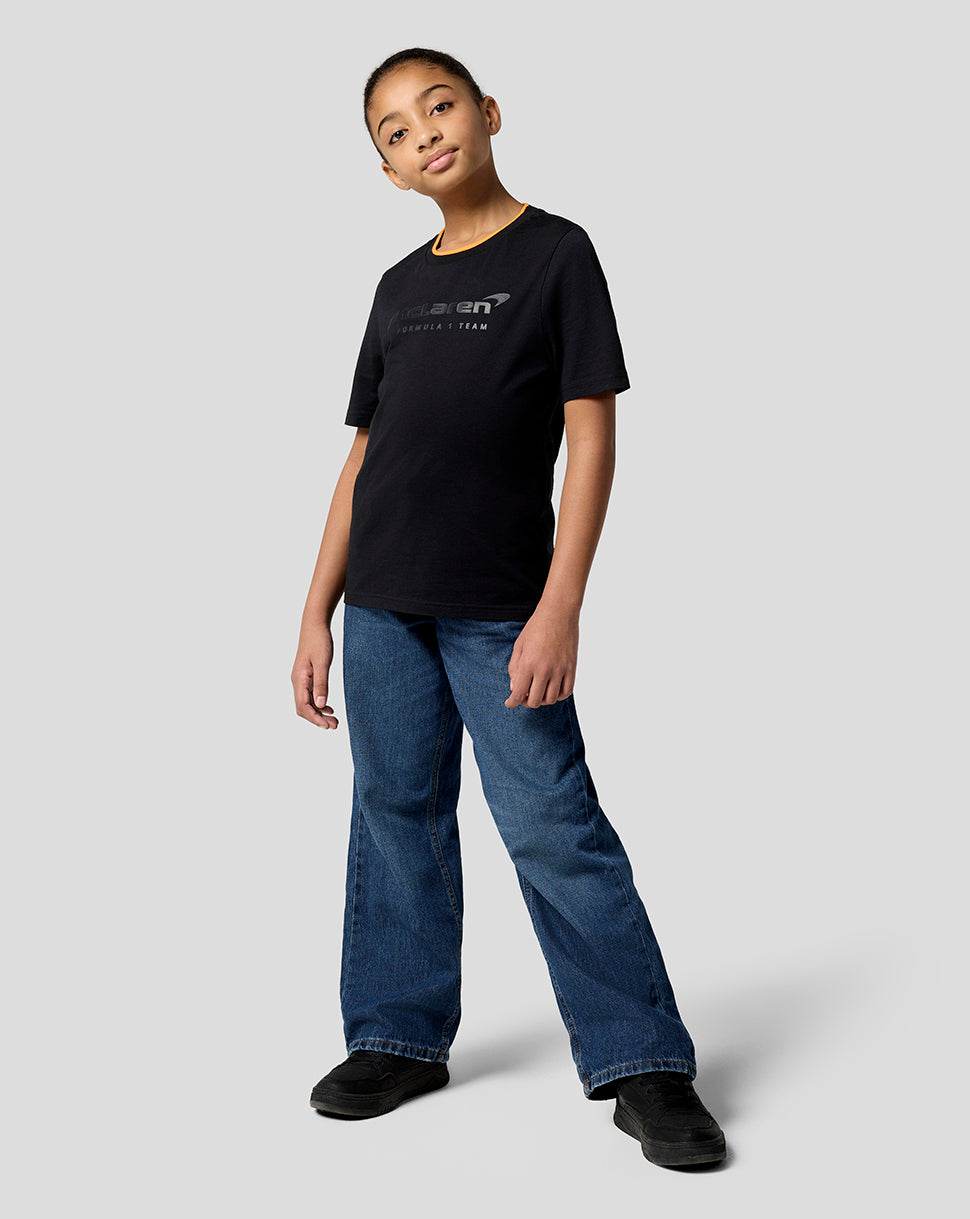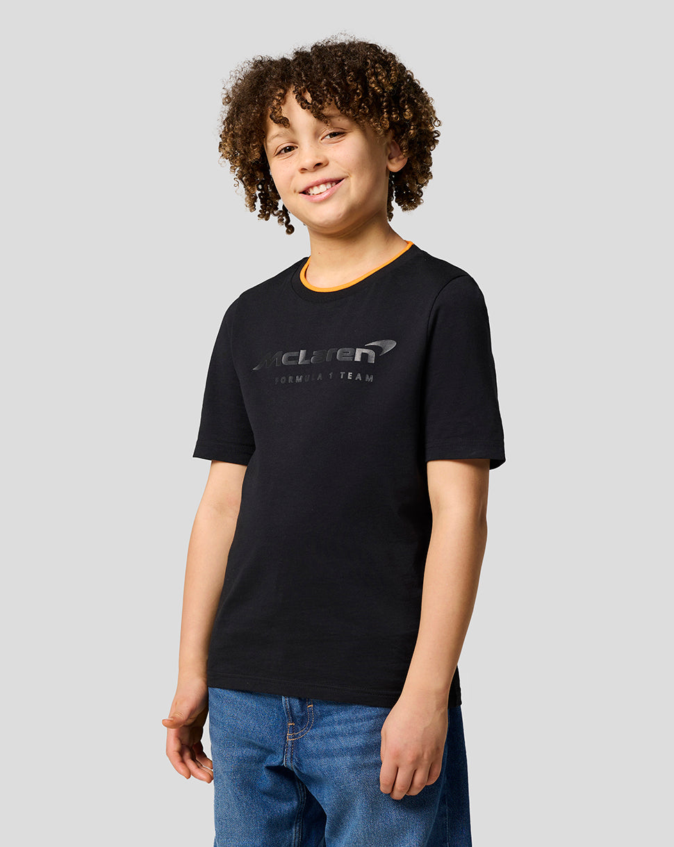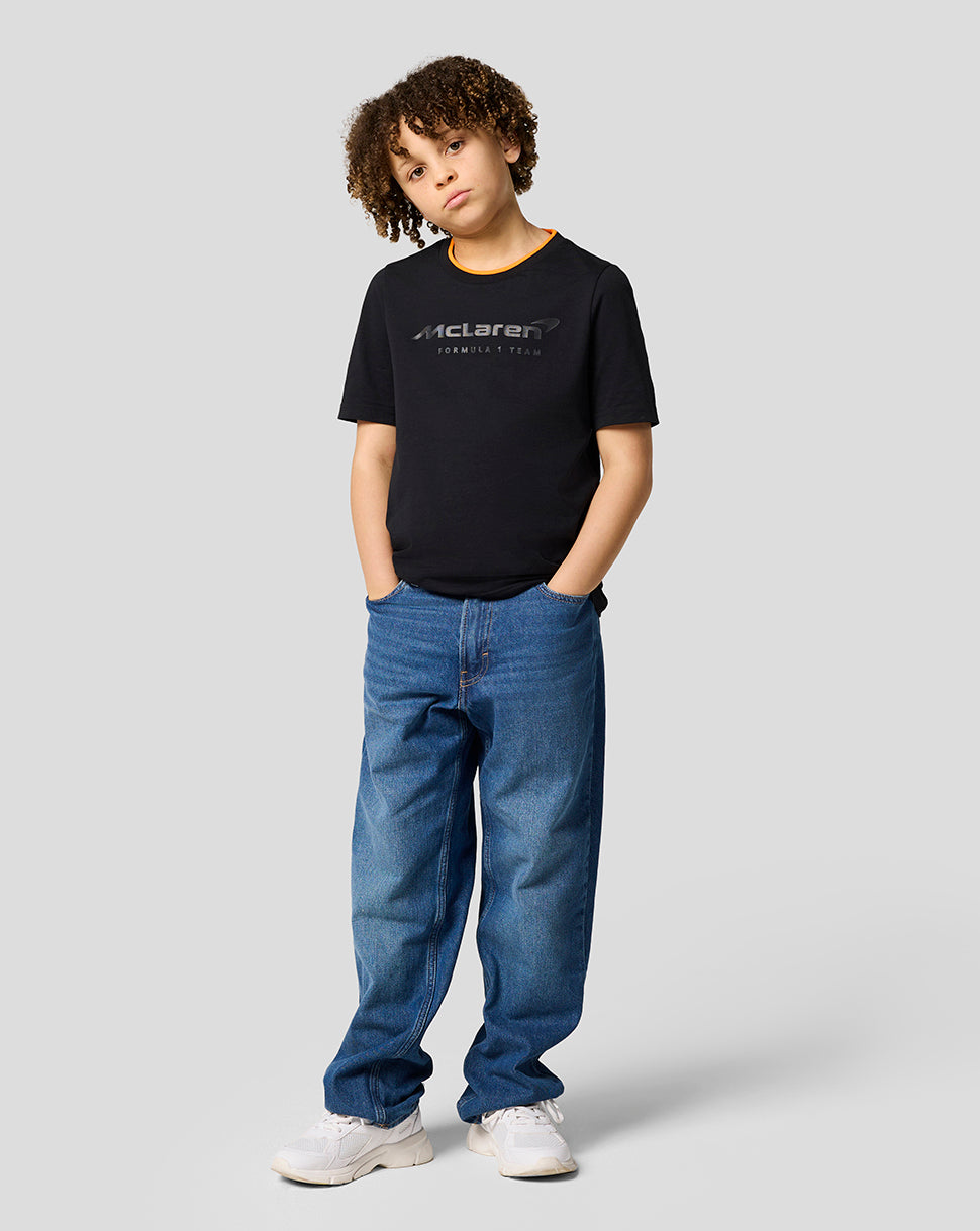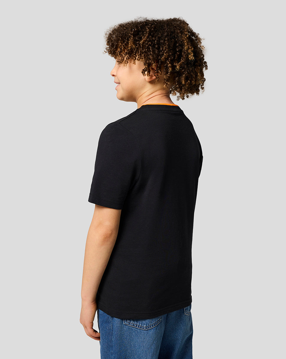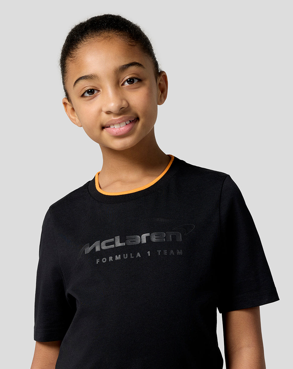 Elevate your little one’s race day attire with the McLaren Racing Unisex Core Essentials T-Shirt. This laid-back jersey features a ribbed crew neckline with subtle team tipping and a large screen-printed type logo at the front. Set-in short sleeves and a classic fit allows unrestricted movement as you gear up for yet another Grand Prix.