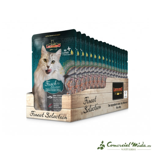 LEONARDO Menu de Pescado & Gambas, El mejor alimento completo para gatos adultos de LEONARDO