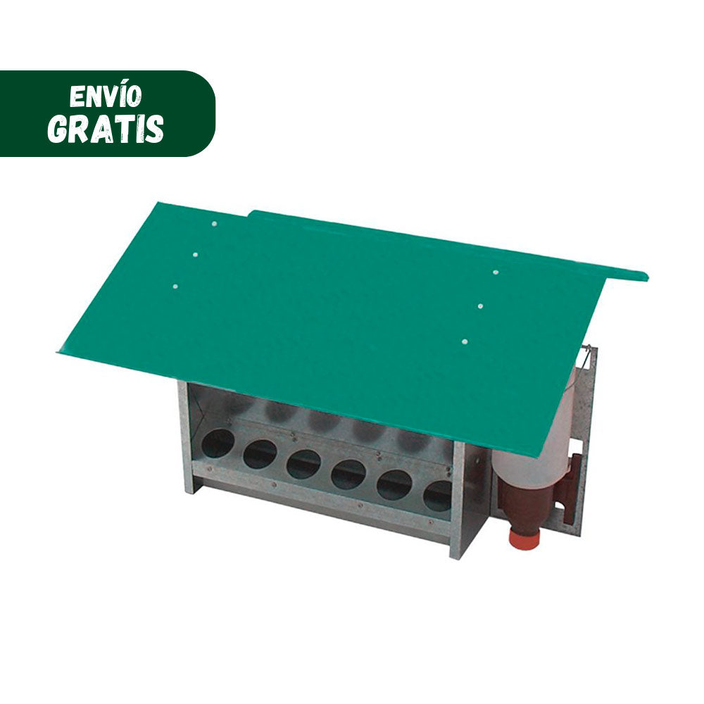 La combinazione di mangiatoia e abbeveratoio per polli è un’opzione eccellente per nutrire e abbeverare qualsiasi pollo che si trova all’aperto o che ama la libertà della vita all’aria aperta. È realizzato in lamiera zincata con tetto in lamiera laccata verde. Include una borraccia in plastica da 2 litri. Dispone di 12 fori , 6 per lato, per ridurre gli sprechi alimentari. Misure:lunghezza 70 cm, larghezza 57 cm e altezza 41 cm.