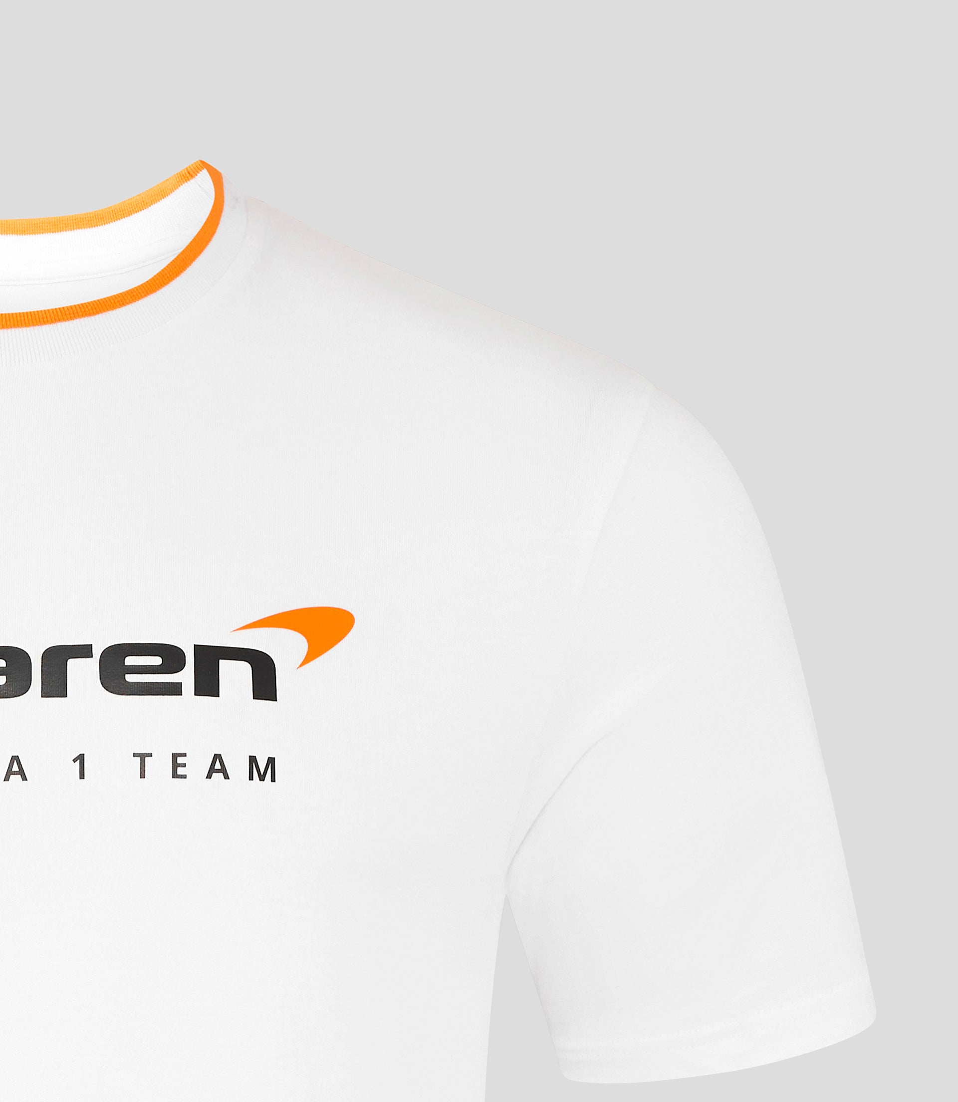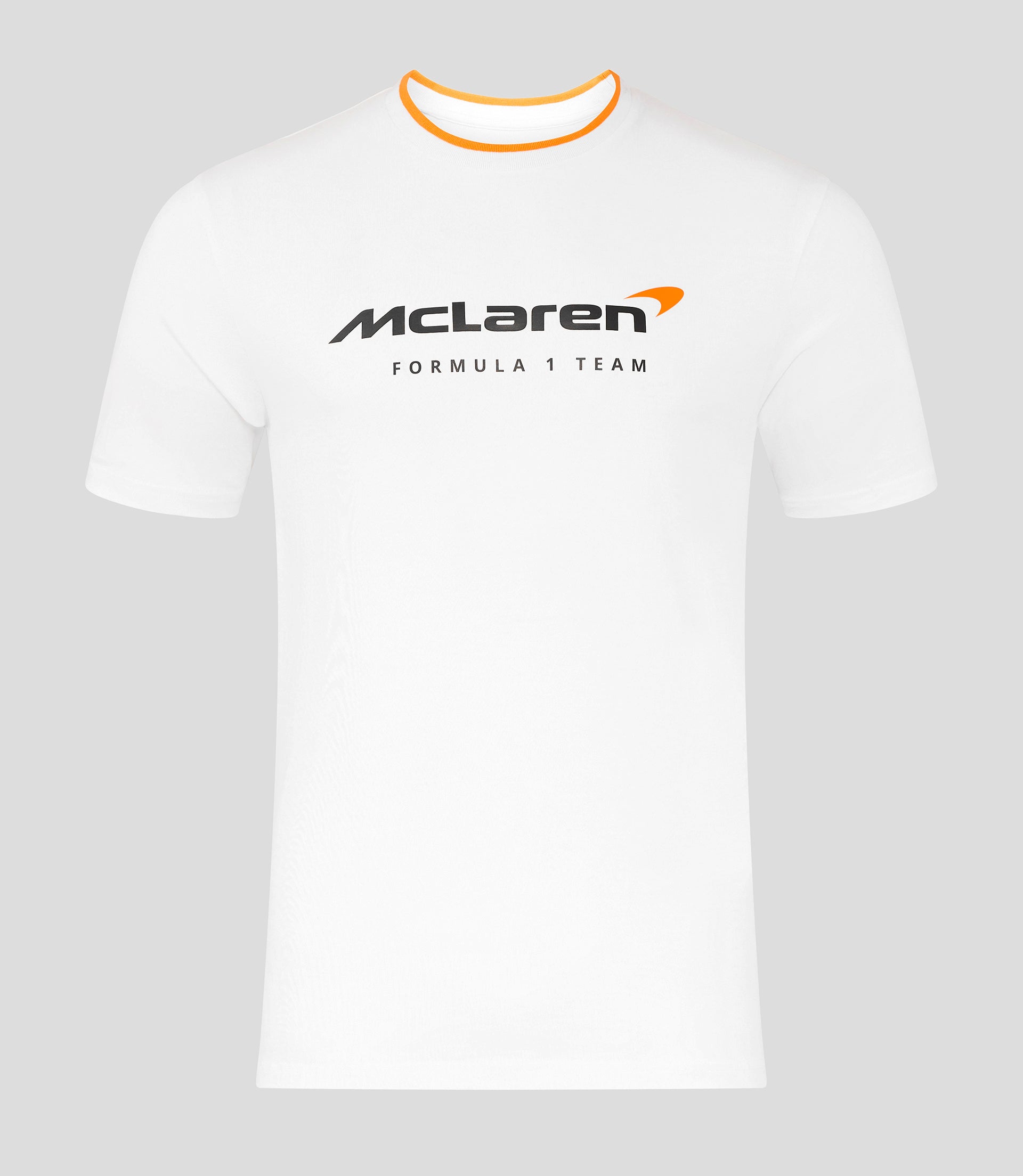 Elevate your race day attire with the McLaren Racing Unisex Core Essentials T-Shirt. This laid-back jersey features a ribbed crew neckline with subtle team tipping and a large screen-printed type logo at the front. Set-in short sleeves and a classic fit allows unrestricted movement as you gear up for yet another Grand Prix.
