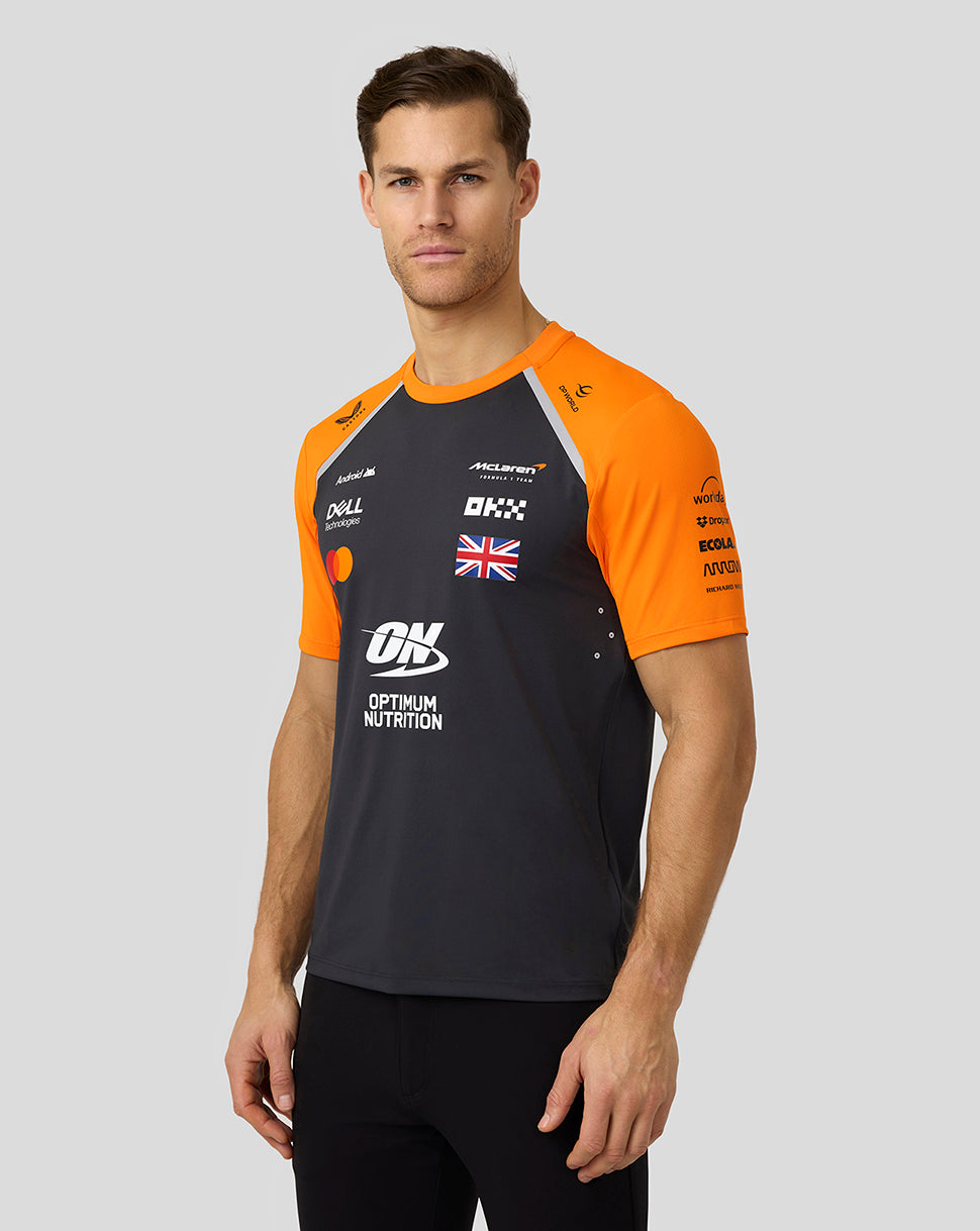 This classic-fit Men’s McLaren Official Formula 1 Team Set Up T-Shirt celebrates British motorsport sensation Lando Norris. A lower-back mesh panel and laser-cut underarm holes offer increased airflow in the driver’s seat, while the screen-printed graphics showcase where your loyalties lie. Wearers will also benefit from subtle reflective shoulder seam taping for navigating nighttime races.
