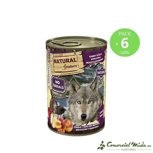 6 Lattine da 400 gr di Natural Greatness Complet Coniglio e Anatra. EAN 8425402277904.