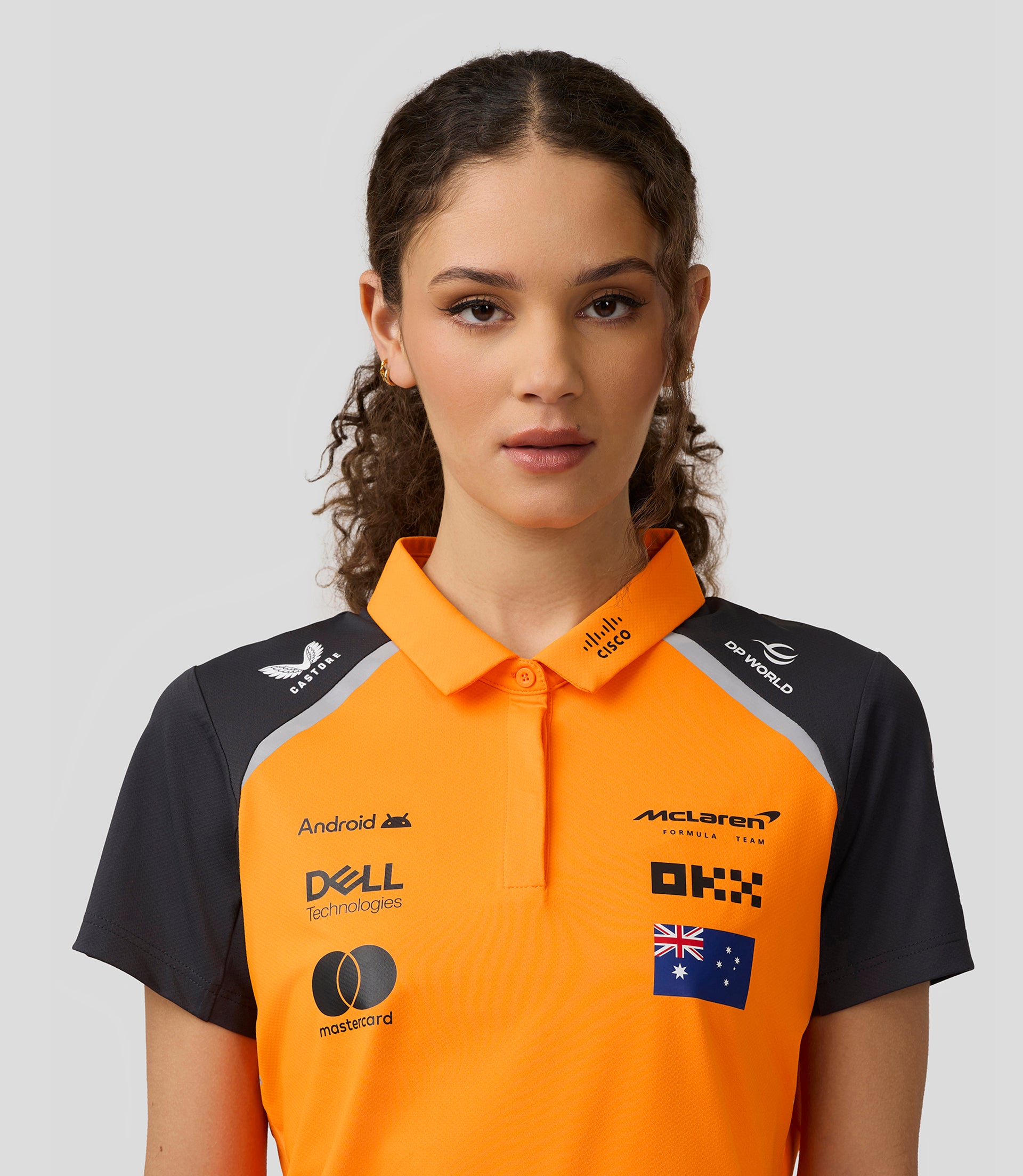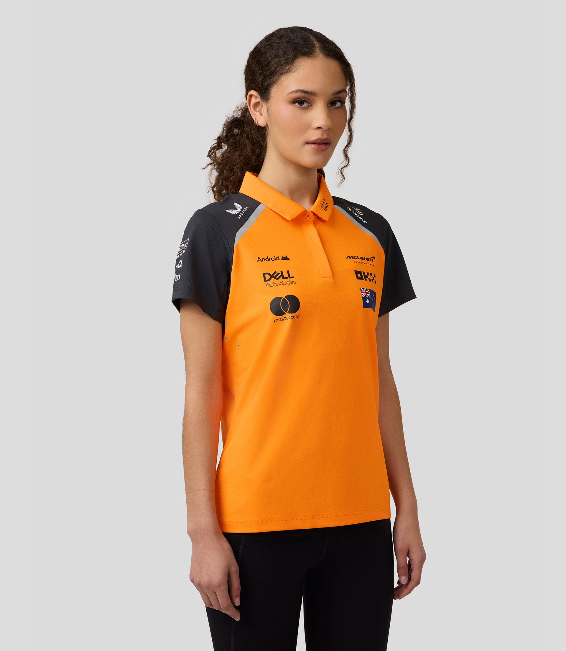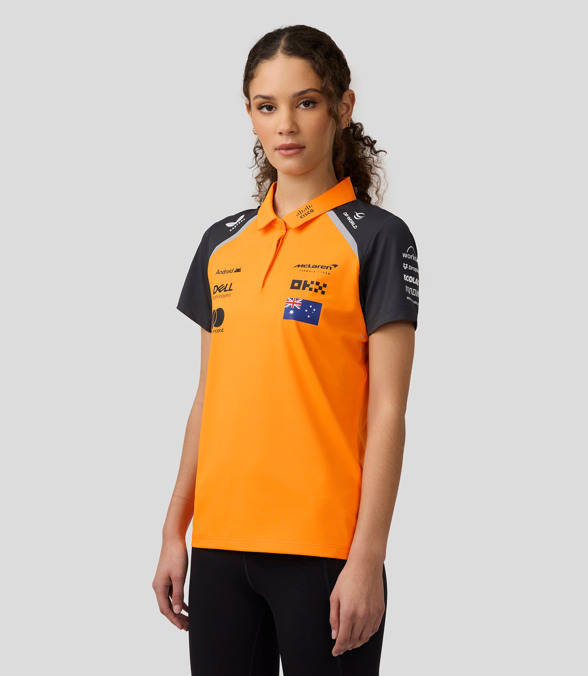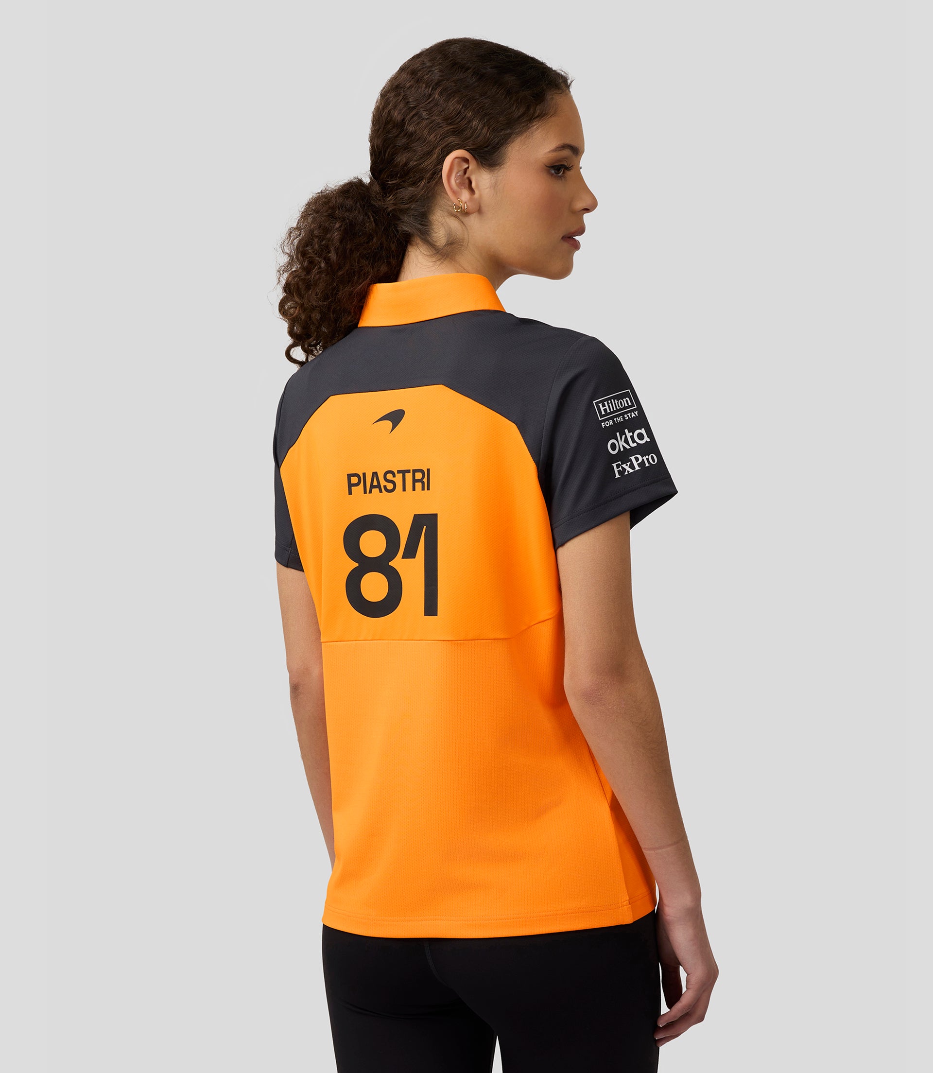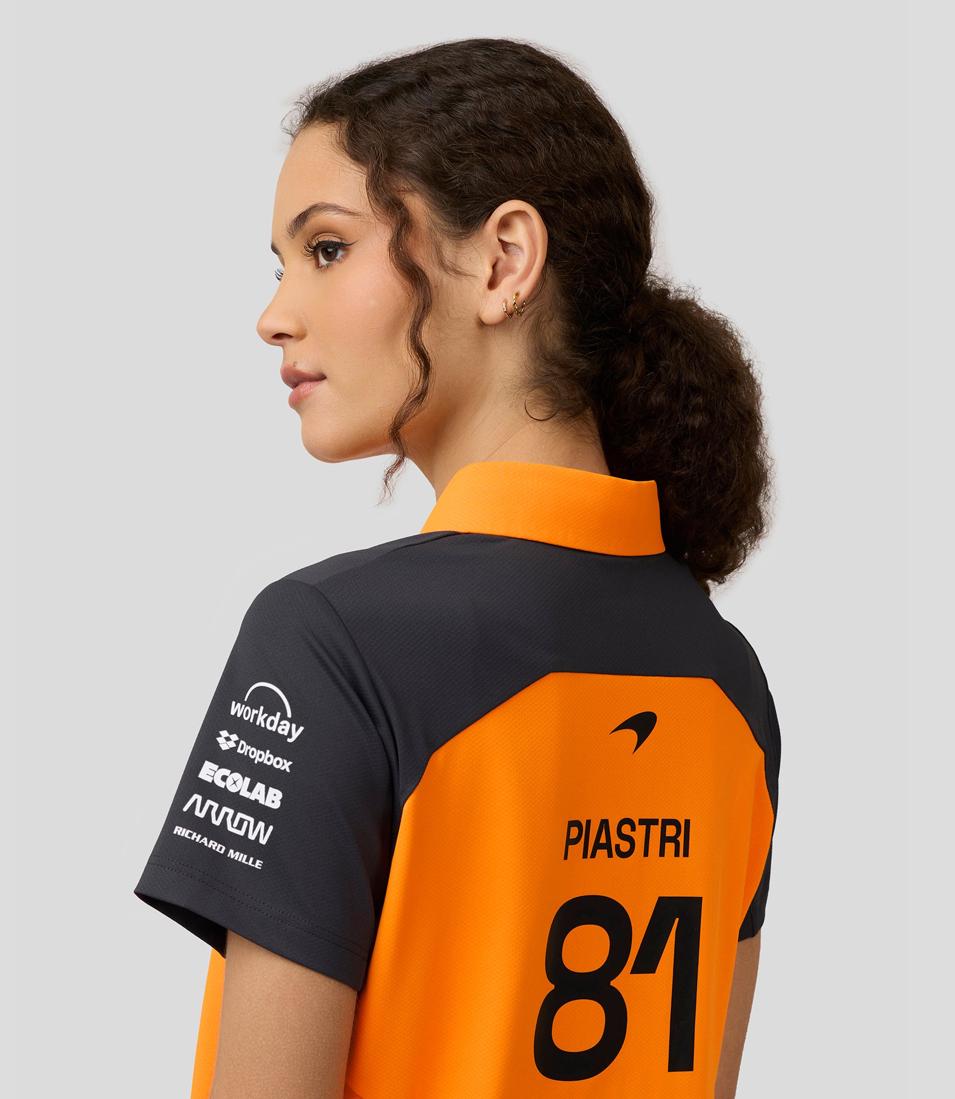 Push for pole position in this Women’s McLaren Official Formula 1 Team Polo Shirt — designed to put Oscar Piastri fans ahead of the pack. Fitted with a mesh back panel for optimised breathability, this Polo Shirt features a classic silhouette and set-in short-sleeve construction for unrestricted movement. Laser-cut holes placed under the arms help you keep cool as the heat rises in the paddock, while a dedicated screen print at the back of the garment marks the number 81 Australian as your favourite driver.