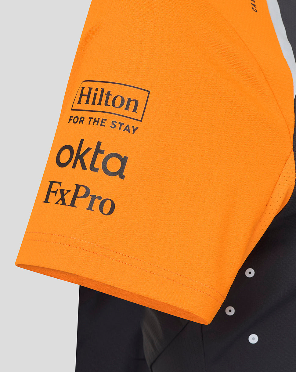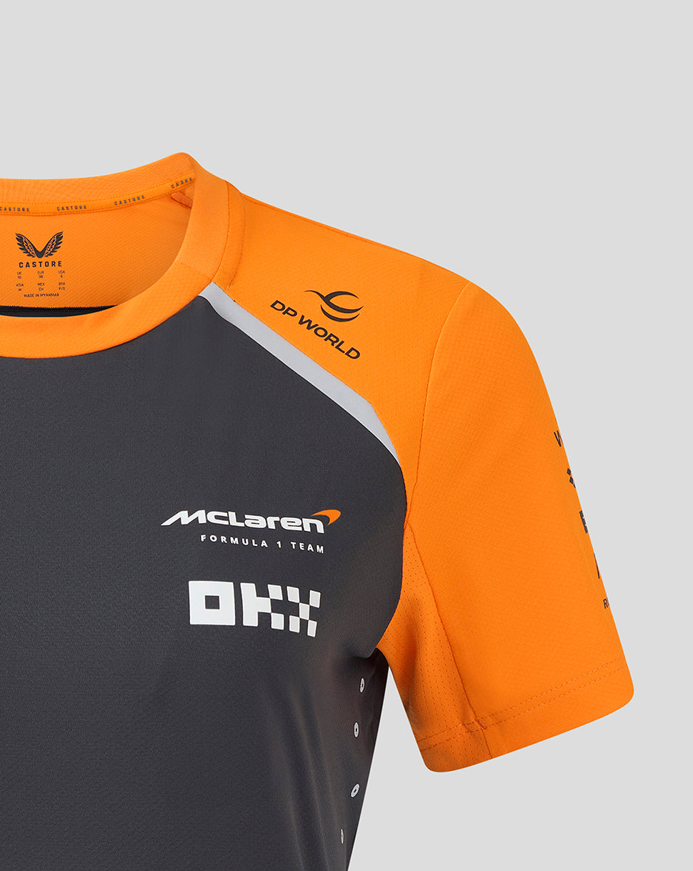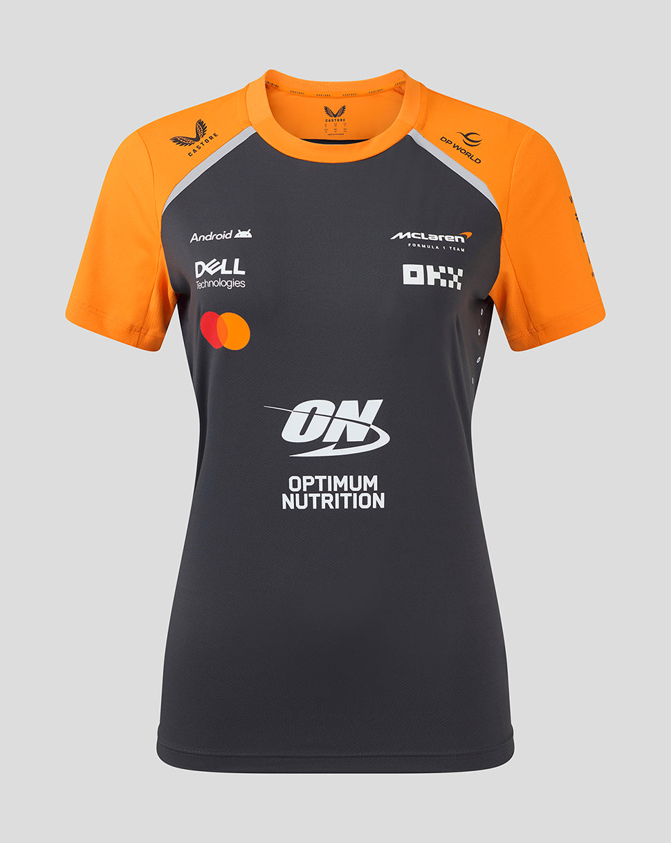 Official Womens Personalised McLaren Formula 1 Team Set-Up T-Shirt – Phantom/Papaya