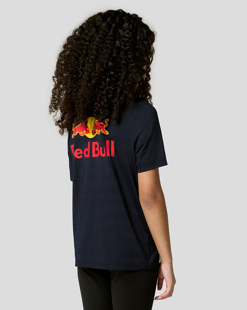 Channel sleek style and sporting excellence in this Junior Replica Polo Shirt from Oracle Red Bull Racing. Concealed press stud poppers help you stay cool during intense moments on the circuit, while bold graphics proudly show support for reigning Formula One champion Max Verstappen.