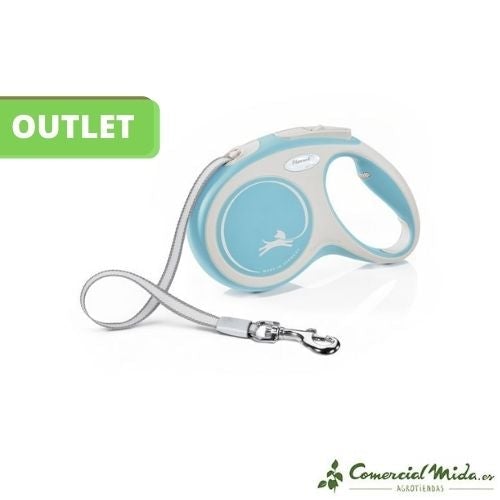 Flexi New Comfort è un guinzaglio retrattile per cani di taglia media e grande . Il design ha un meccanismo comodo e semplice che raccoglie automaticamente il nastro nella parte superiore del pezzo principale. Include un pulsante di frenata morbida che attiva istantaneamente il meccanismo e un sistema di uscita del nastro che consente una buona mobilità , evitando grovigli durante lo stretching o la raccolta. L’impugnatura è ergonomica per garantire una buona presa ed è di colore azzurro .