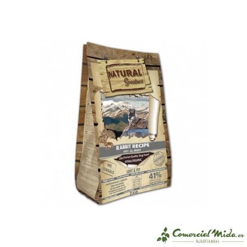 - Sacco da 2 Kg Natural Greatness Rabbit Light & Fit. EAN 8414606901234.