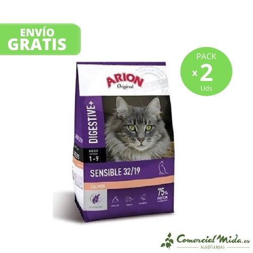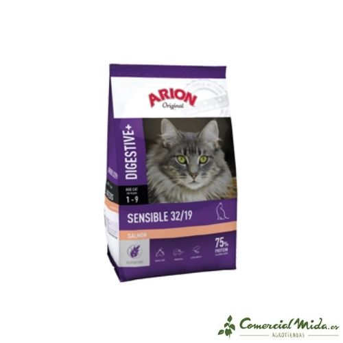 Original Sensitive Digestive 32/19 di Arione è un Penso indicato per quelli gatti sofferenza sensibilità digestiva. Il ingredienti di cui sono composti altissima digeribilità e contribuire al migliora di normale processo digestivo. combinare fibre naturali facilmente fermentabile con prebiotici Compreso F.O.S., M.O.S Y Beta-glucani promuovere un ottimo assorbimento dei nutrienti Quello equilibrare la flora intestinale e aiutaci a prenderne un po’ cacca più compatta Y sano.