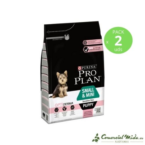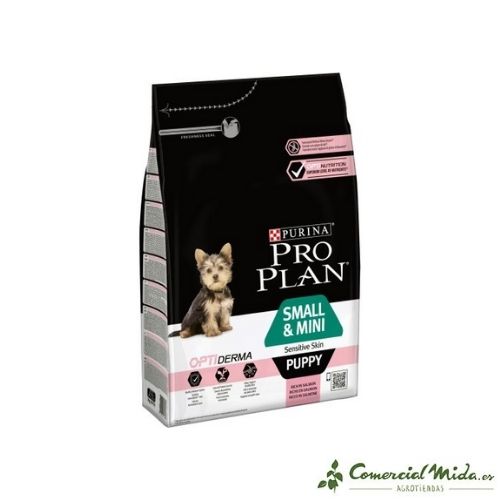 PURINA PRO PLAN Pelle sensibile Small&Mini Puppyin insieme a OPTIDERMA ricco di salmonen è un alimento secco completo per cuccioli di razza piccola e miniatura creato appositamente per soddisfare le esigenze dei cuccioli con a pelle sensibile e femmine in gravidanza o allattamento. Questo mangime secco completo è ricco di salmone , che contiene fonti proteiche selezionate per aiutare a ridurre le possibili reazioni cutanee associate alle intolleranze alimentari.