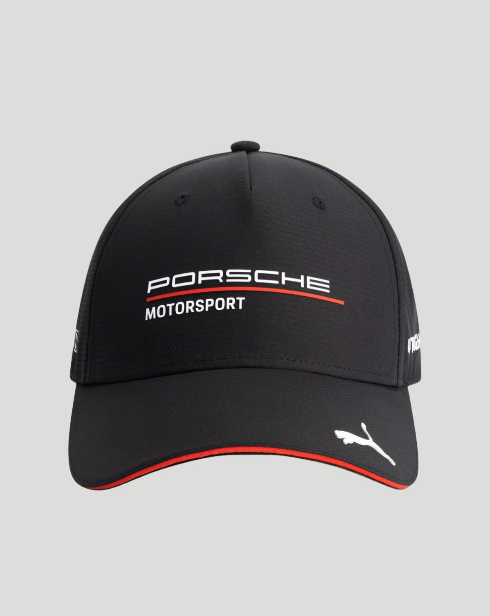 This Mercedes Formula 1 Team Cap is crafted as part of the official Porsche Motorsport PUMA Team collection, reflecting authentic teamwear quality. Featuring a curved brim, it prominently displays the Porsche Motorsport and sponsor logos, with the distinctive PUMA cat emblem on the peak. Designed by PUMA, the official teamwear partner, this cap combines motorsport heritage with premium craftsmanship for fans and collectors alike.