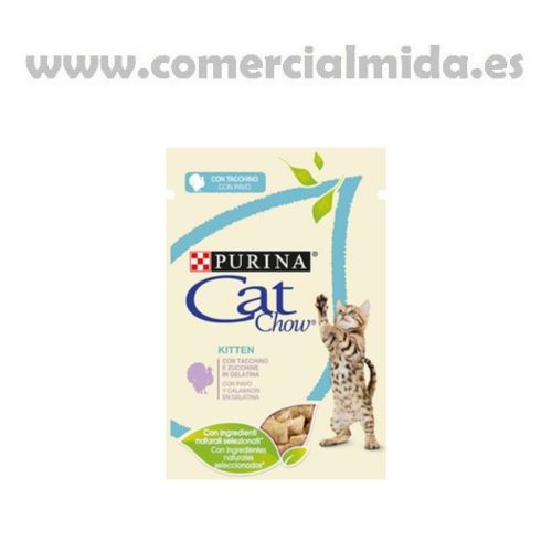 Purina Cat Chow alimento umido per gatti giovani o giovani con pezzi di carne al gusto di tacchino e ad alta appetibilità . Contiene ingredienti naturali e senza coloranti, aromi esterni o conservanti di origine artificiale. Tacchino con pezzi gelatinosi con zucchine . Confezionato in sacchetto ermetico con 85 gr.