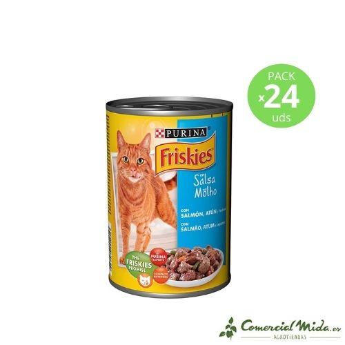 Purina Friskies in salsa è un cibo umido aromatizzato salmone, tonno e verdure studiato per soddisfare e completare la dieta di tutti i gatti. La sua formula includeproteine di alta qualità e con una formula equilibrata che haingredienti gustosi e sani Cosa portano ai gatti?tutti i nutrienti necessari essere pieni di vitalità.