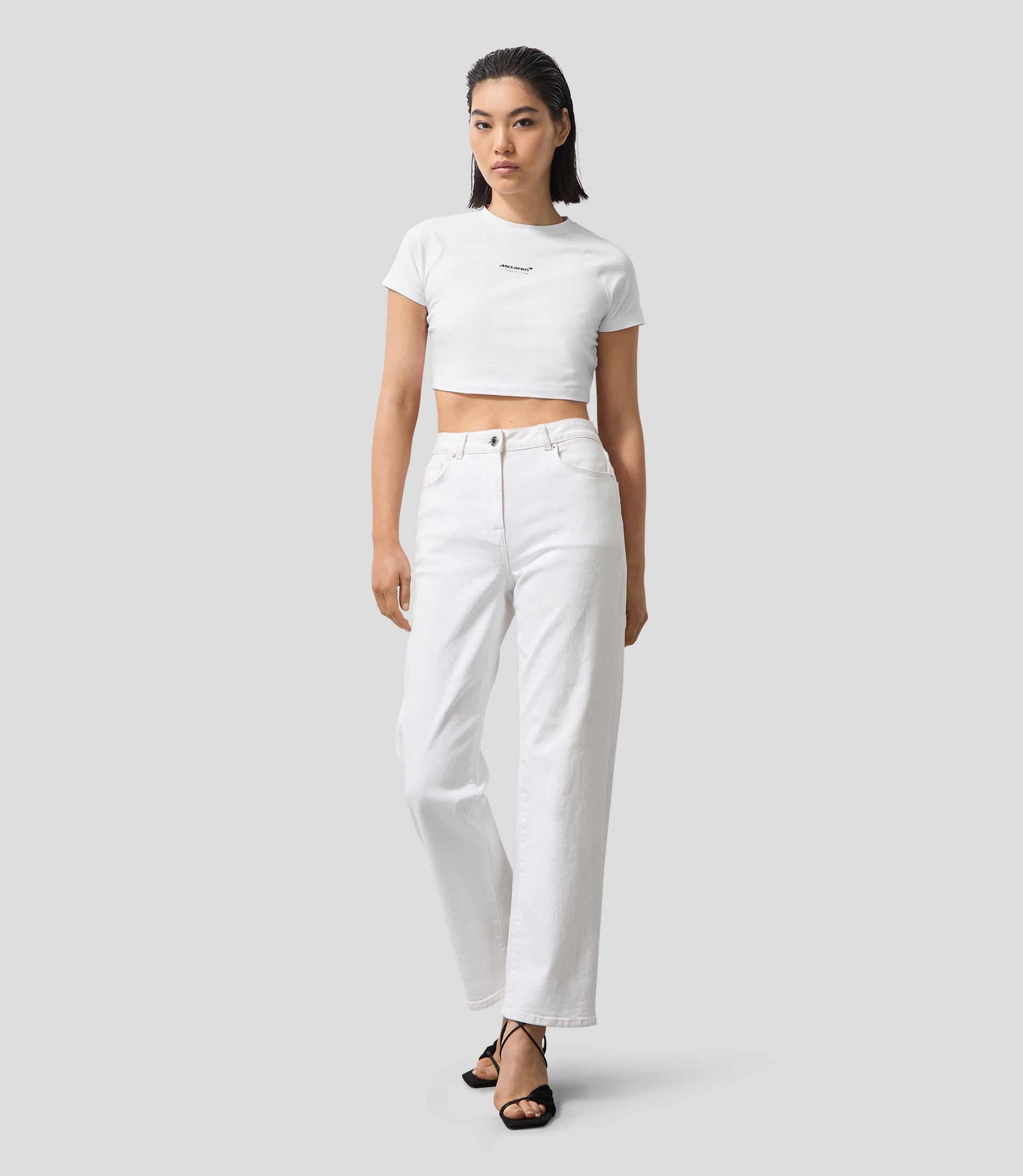 The Reiss x McLaren Formula 1 Team Cropped Logo T-Shirt in white is expertly crafted from stretch-cotton jersey for a comfortable and flattering fit. With a small McLaren Formula 1 Team logo on the chest and subtle branding on the back, this t-shirt combines sporty style with sophisticated design. Short raglan sleeves add a touch of athleticism.
