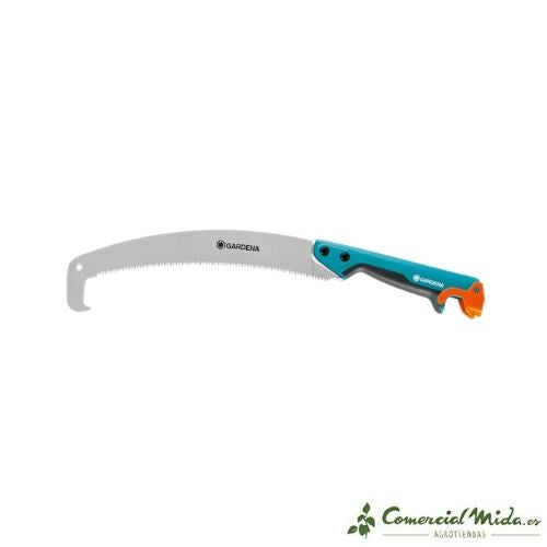Il copertura della sega curva protegge all’utensile da ruggine e corrosione prolungare la vita utile dello strumento che quando utilizzato ha a la protezione all’estremità della maniglia impedisce lo slittamento e fornire una maggiore sicurezza durante l’esecuzione della potatura. Inoltre lo è facile da riporre in quanto può essere appeso all’occhiello integrato mentre la lama della sega ha una guaina protettiva per mantenerla nelle migliori condizioni possibili. È disponibile in due dimensioni, una sega con lama da 315 mm e una lama da 340 mm.