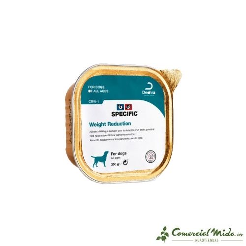 Il cibo umido Riduzione del peso CRW da Specific è un cibo completamente bagnato per cani che hanno la necessità di dimagrire perché ne soffrono obesità o sono diabetici. L’esclusiva formulazione fa dimagrire l’animale grazie alla sua gusto eccellente e il suo grande capacità saziante. Questo tipo di cibo fornisce tutti i tipi di nutrienti, vitamine Y minerali necessario per far divertire il cane buona salute attraverso un dieta completa e salutare , La sua formulazione è caratterizzata dall’essere ricco di fibre e povero di grassi ed energia per favorire la perdita di peso.