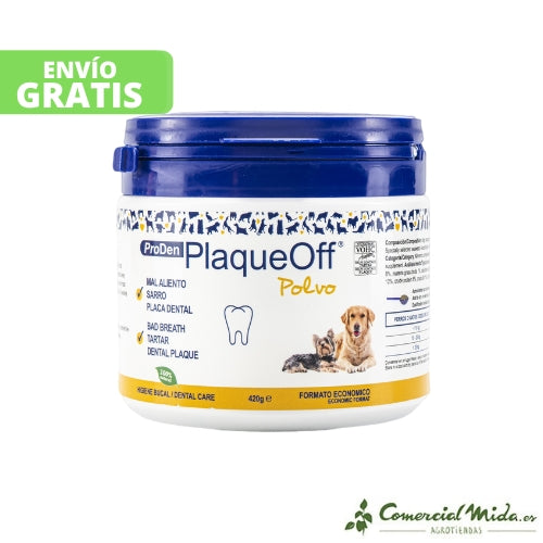 Il contenuto di alghe di origine naturale A.N. ProDen funziona attraverso il corpo del cane o del gatto dove ammorbidisce il tartaro esistente sui denti e previene la formazione di placca sui denti.