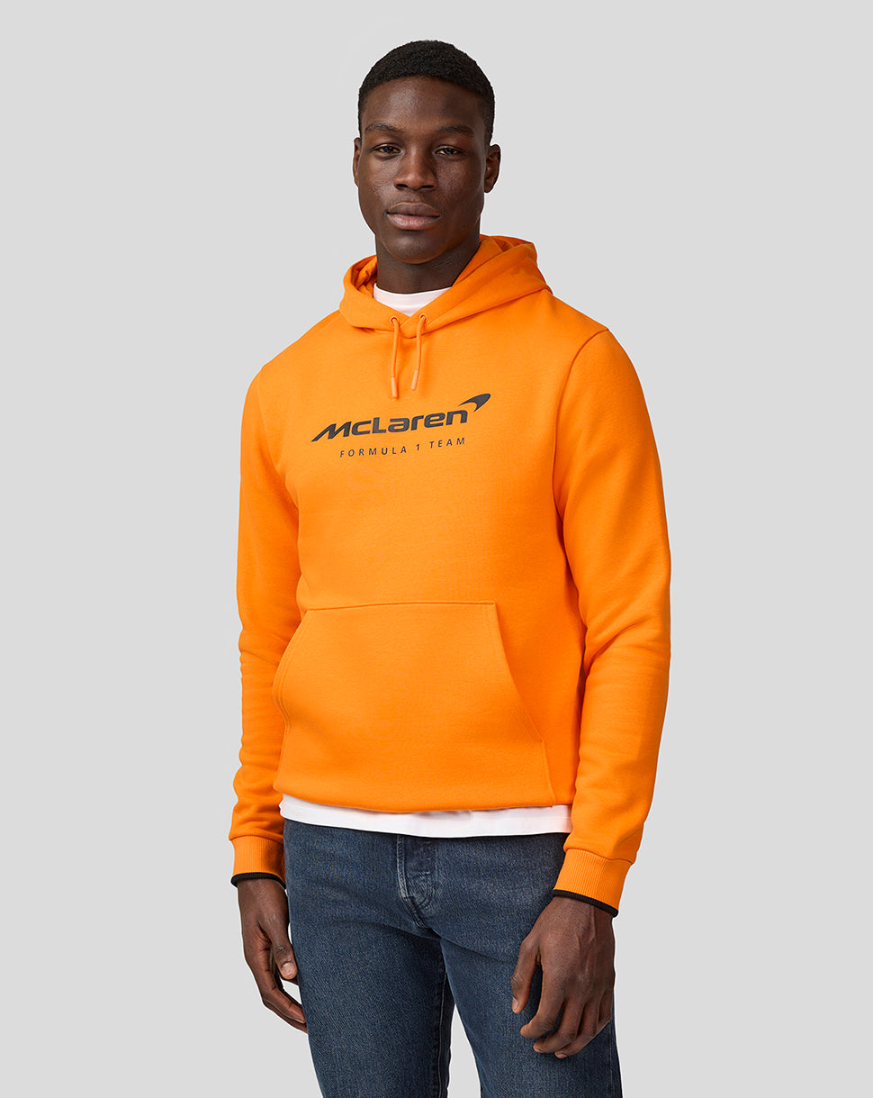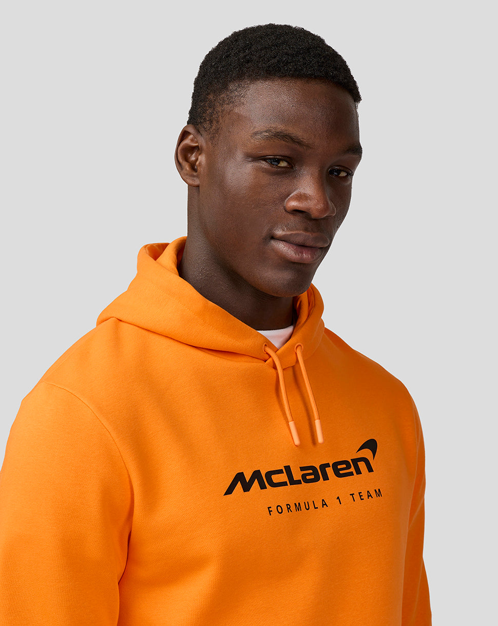 Spend your downtime right in the McLaren Racing Unisex Core Essentials Hoodie. A large kangaroo front pocket can be utilised for secure goods storage, while the engineered hood with adjustable drawcord lets you craft a more tailored fit. The long-sleeved Hoodie sees iconic McLaren branding featured on the front. Refined ribbed detailing and contrast tipping showcase your affinity with the British racing outfit.