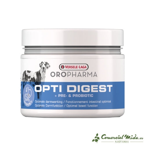 El suplemento para perros Opti Digest de OROPHARMA mantiene el equilibrio y el correcto funcionamiento de la flora intestinal de su mascota gracias a los prebióticos y probióticos que contiene, mejorando también el transito digestivo del perro.