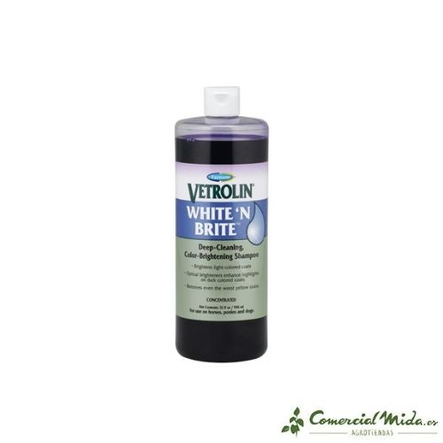 Shampoo condizionatore Vetrolin White’n Brite è l’ideale per criniera, coda e mantello poiché pulisce in profondità e lascia il Capelli morbidi e brillante. È efficace con entrambi acqua fredda Che cosa piccante da quando lo so si chiarisce rapidamente. Contiene derivati dell’olio di cocco idrato Y aumentare l’assorbimento dei principi schiarenti. Il suo profumo è libero di attirare gli insetti .