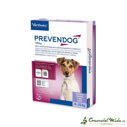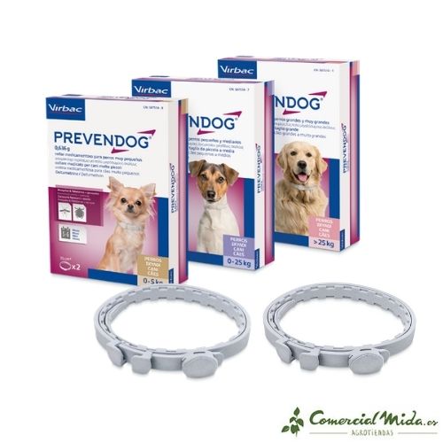 Il collare antiparassitario VIRBAC PREVENDOG È l’ideale per combattere pulci, zecche e flebotomi trasmettitori di leishmania nei cani di tutte le razze e taglie. Composto dal 4% di deltametrina , protegge il tuo animale dall’attacco di insetti parassiti esterni e dalle malattie che possono trasmettere. Disponibile in 3 taglie: 35, 60 e 75 cm a seconda della taglia del tuo cane . Questa collana medicata è elastica, arriva colore grigio e si distingue per la sua esclusiva sistema di sicurezza anti strangolamento.