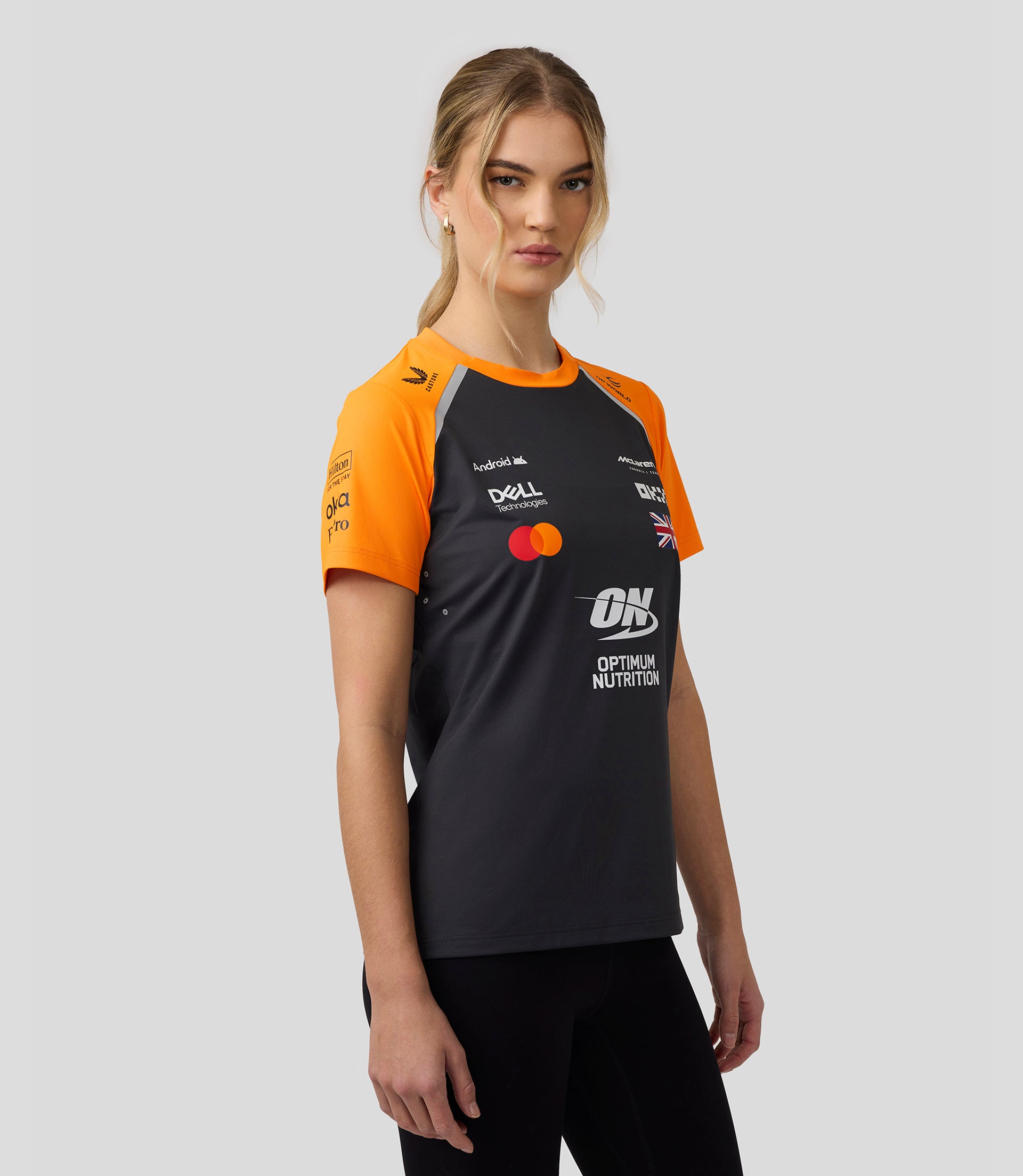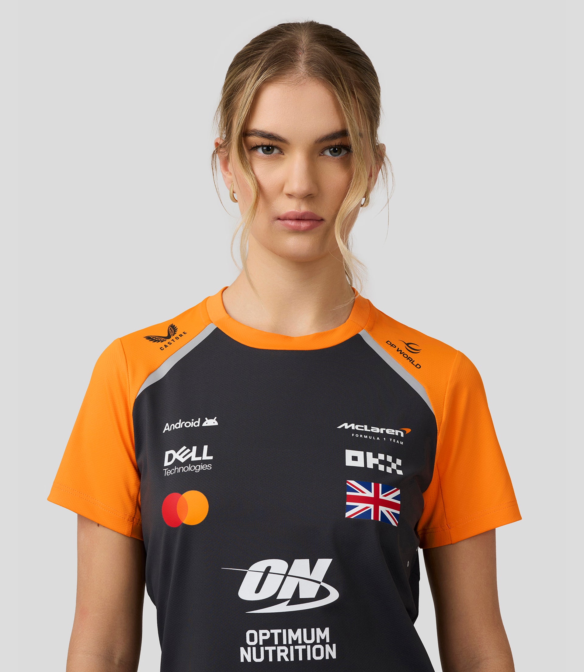 This classic-fit Women’s McLaren Official Formula 1 Team Set Up T-Shirt celebrates British motorsport sensation Lando Norris. A lower-back mesh panel and laser-cut underarm holes offer increased airflow in the driver’s seat, while the screen-printed graphics showcase where your loyalties lie. Wearers will also benefit from subtle reflective shoulder seam taping for navigating nighttime races.