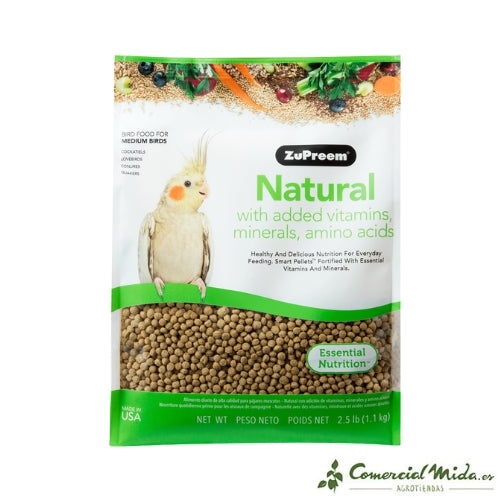 La mezcla natural para aves Carolinas de Zupreem es un alimento natural en formato de pellets enriquecido con vitaminas y aminoácidos esenciales indicado para Agapornis, Ninfas y Cotorras.